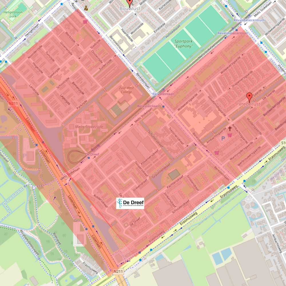 In de roodgemarkeerde gebieden komen wij aan huis.